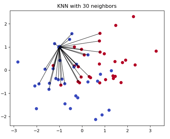 k-NN (k-Nearest Neighbors) Imputation은 우리가 흔히 알고있는 k-NN 알고리즘 기반의 방법으로, 단점이 많은 단순대치법의 대안으로 활용되었습니다. 위의 그림과 같은 feature space에서 k 개의 인접한 점들의 값을 바탕으로 결측치를 대치하게 됩니다. 인접한 점들은 결측치가 존재하는 점의 feature들과 유사한 특징을 가진다고 가정하기 때문에, 인접하는 점들의 값을 활용합니다. 단순대치법보다는 정확한 경우가 많지만, 데이터 크기가 방대해질수록 계산량도 매우 커지며, 이상치에 민감하다는 단점이 있습니다.